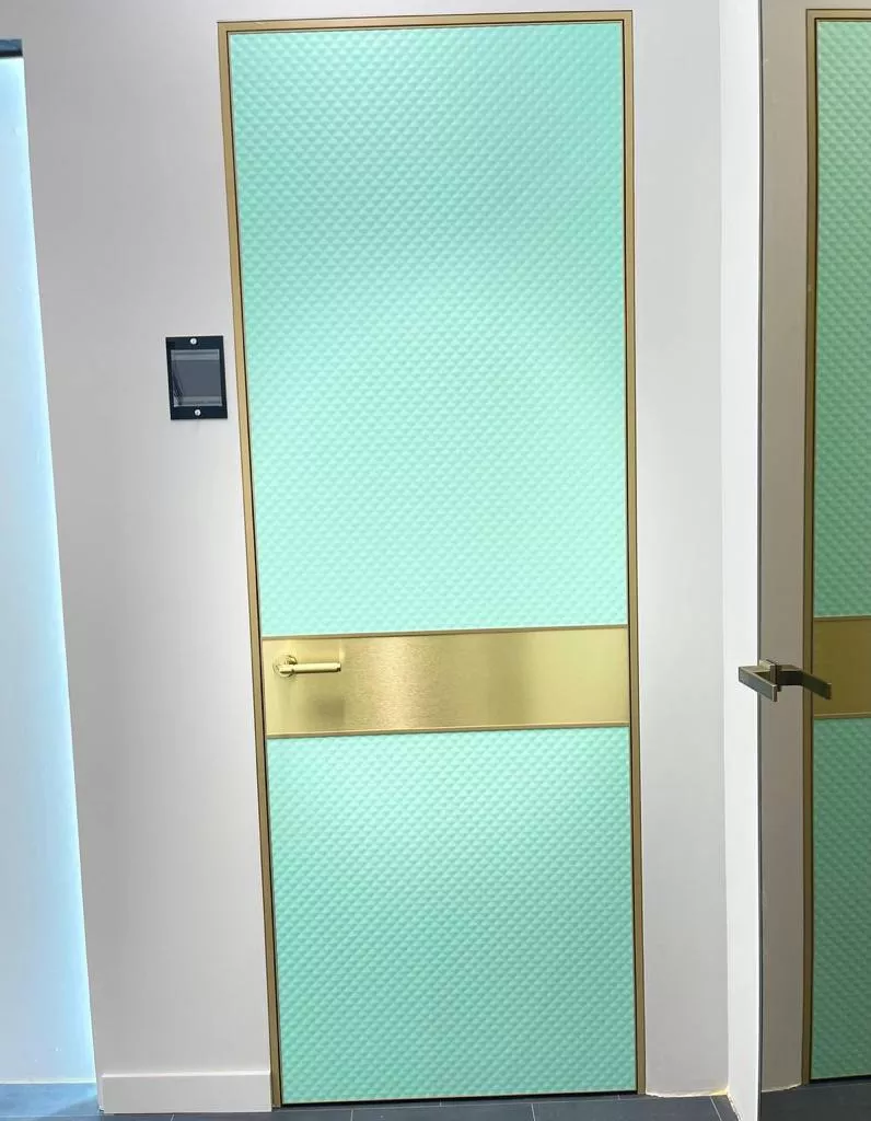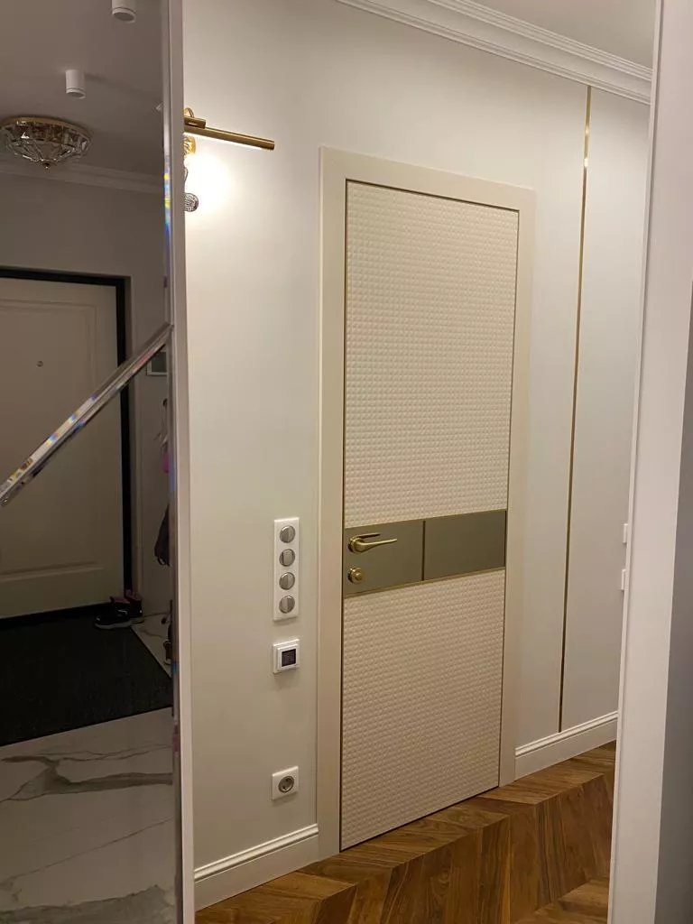 Стиль арт-деко отличает исключительно строгая и четкая геометрия форм, правильные орнаменты, вертикальные и горизонтальные линии. Кроме этого, энергичные оттенки и сочетания цветов, которые вызывают положительные эмоции, выделяя межкомнатную дверь как центральный объект в интерьере.